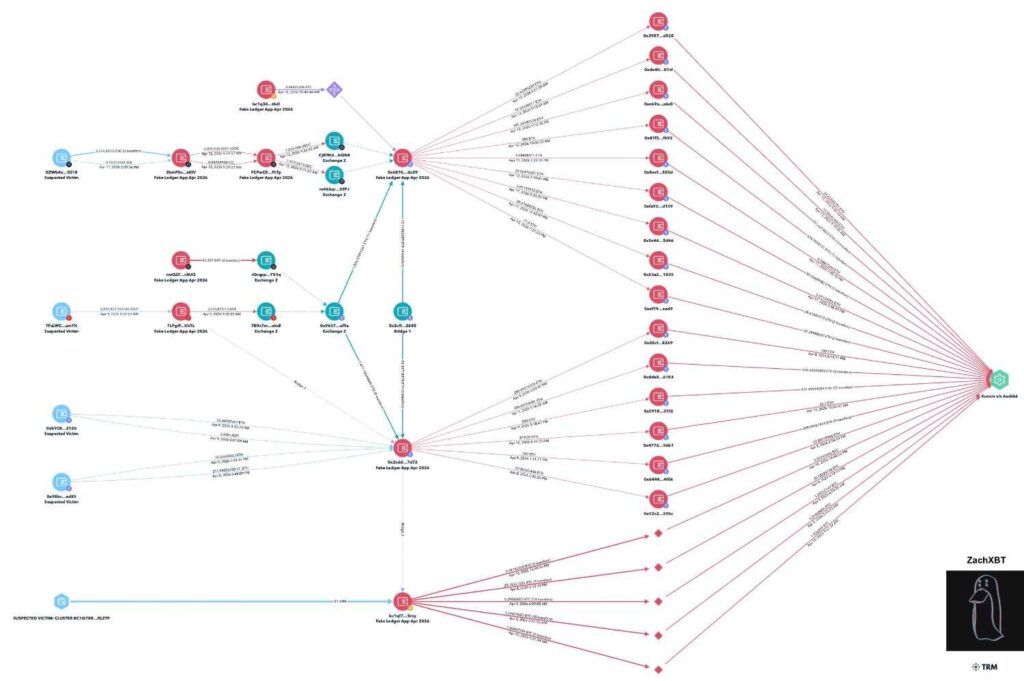 According to blockchain investigator ZachXBT, the app impersonated Ledger Live and deceived more than 50 victims between April 7 and April 13, resulting in significant losses across multiple blockchain networks.