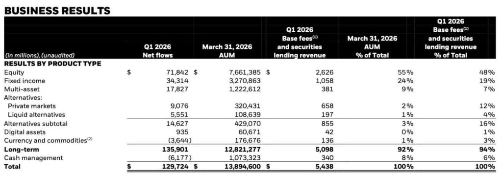 The firm generated just $42 million in base fees from its crypto ETFs during the quarter, a modest contribution alongside $6.7 billion in total revenue over the same period.
