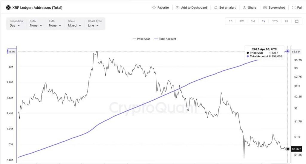 On-chain data shows that XRP adoption continues to accelerate, with total XRP Ledger wallets surpassing 8.1 million, marking a new all-time high.